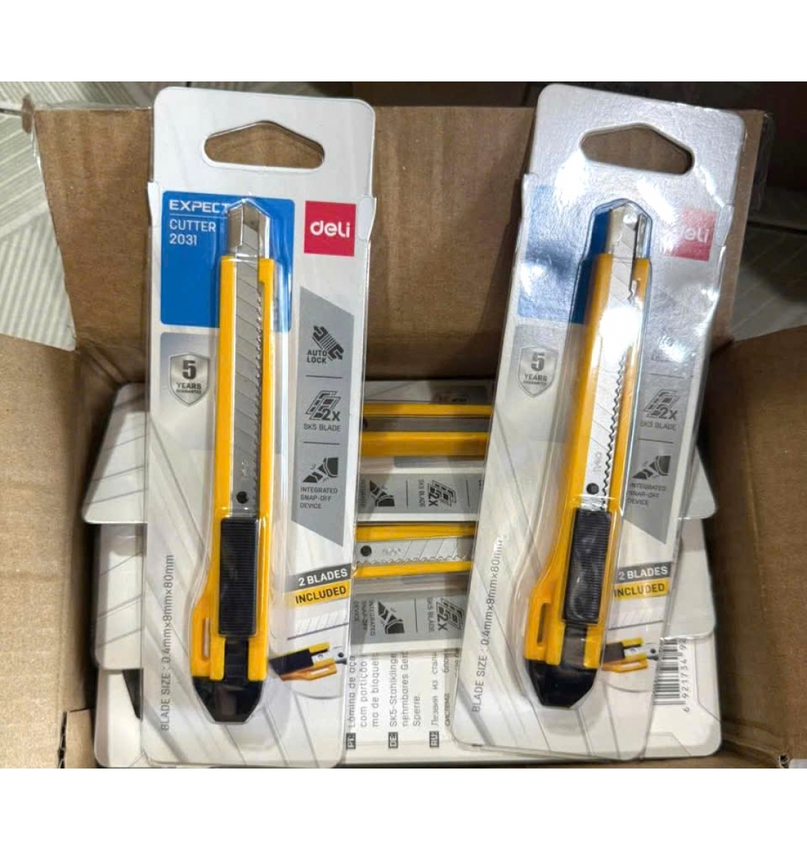 Sản phẩm kèm theo 2 lưỡi dao có sẵn trong dao, có khóa chốt an toàn