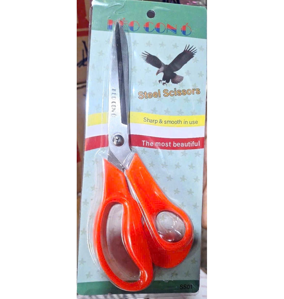 Chất lượng: – kéo inox, cán nhựa dẻo cầm rất êm tay