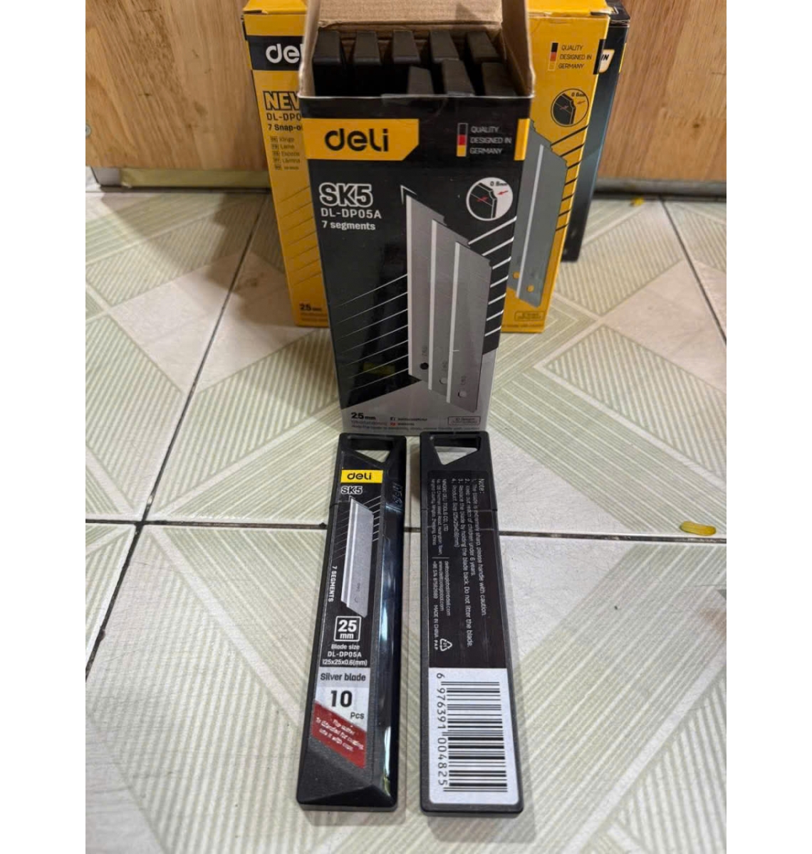 SKU: EDL-DP05AThẻ: deli edl-dp05a, lưỡi dao 25mm, lưỡi dao công nghiệp, lưỡi dao rọc giấy to, phụ kiện dao rọc giấy